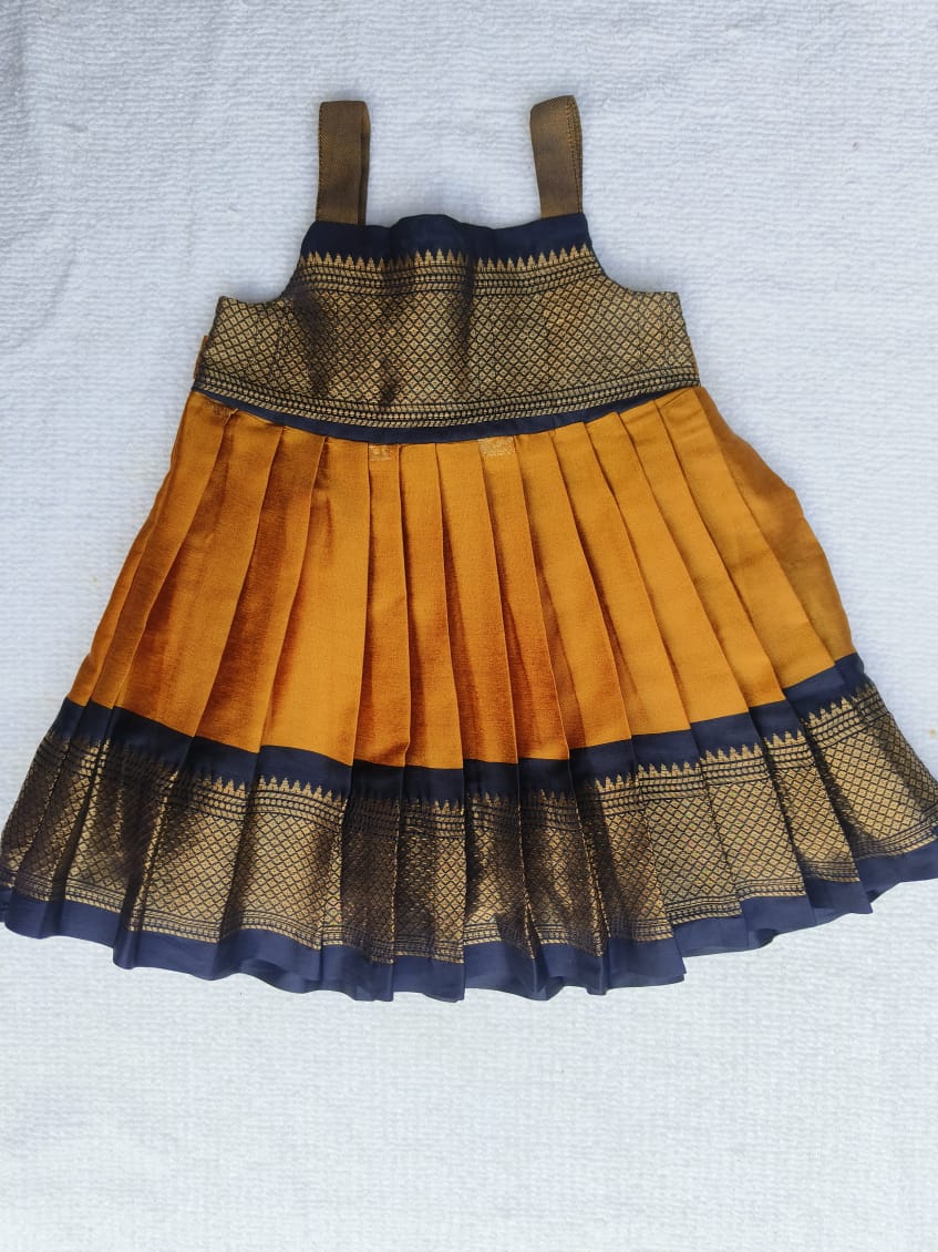 Mustard Yellow and Black Soft Silk Frock